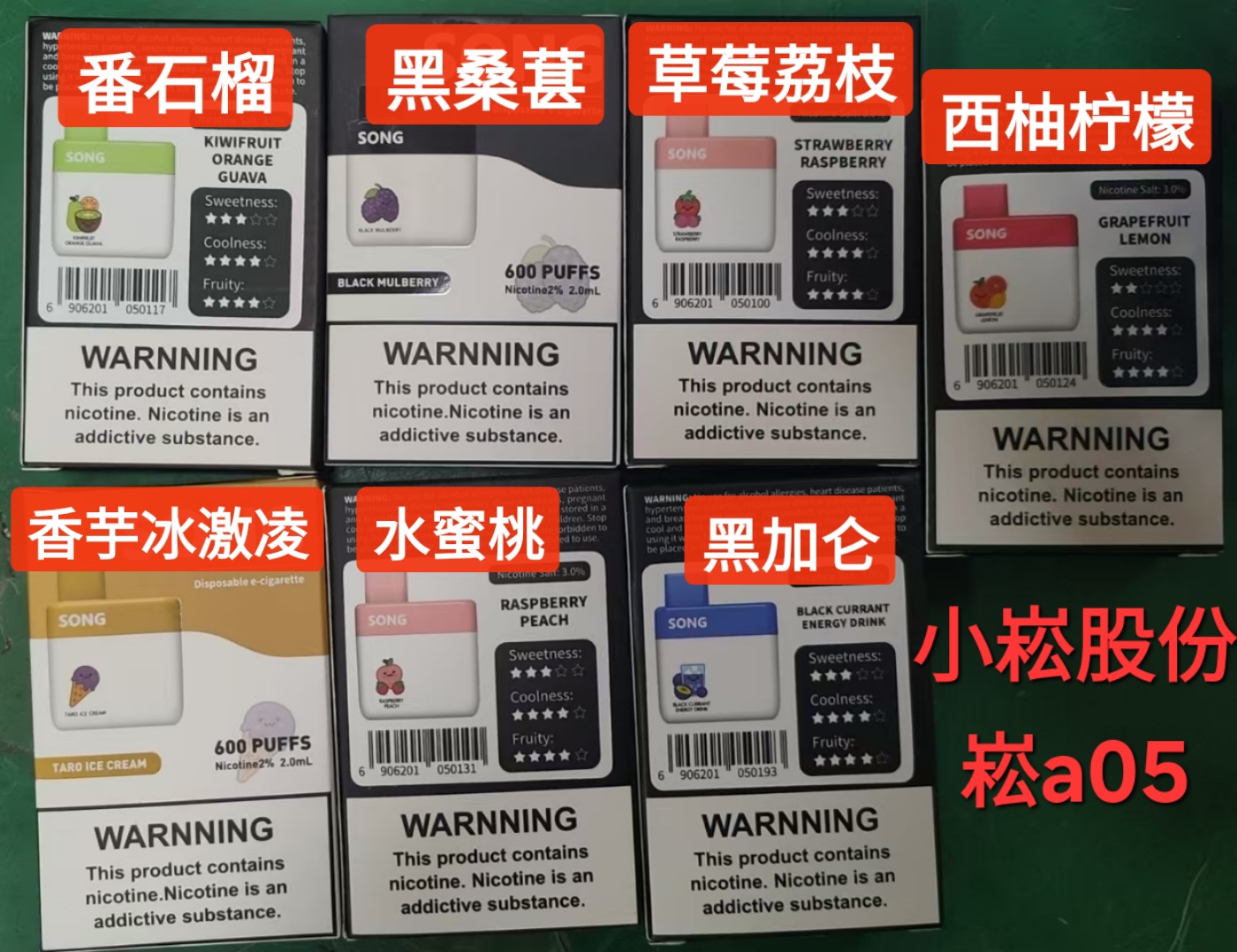 库存有:黑桑葚、香芋、水蜜桃、黑加仑、番石榴、西柚柠檬